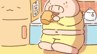 とんさんと冷蔵庫さんはだいたい同じくらいのずんぐりフォルム。