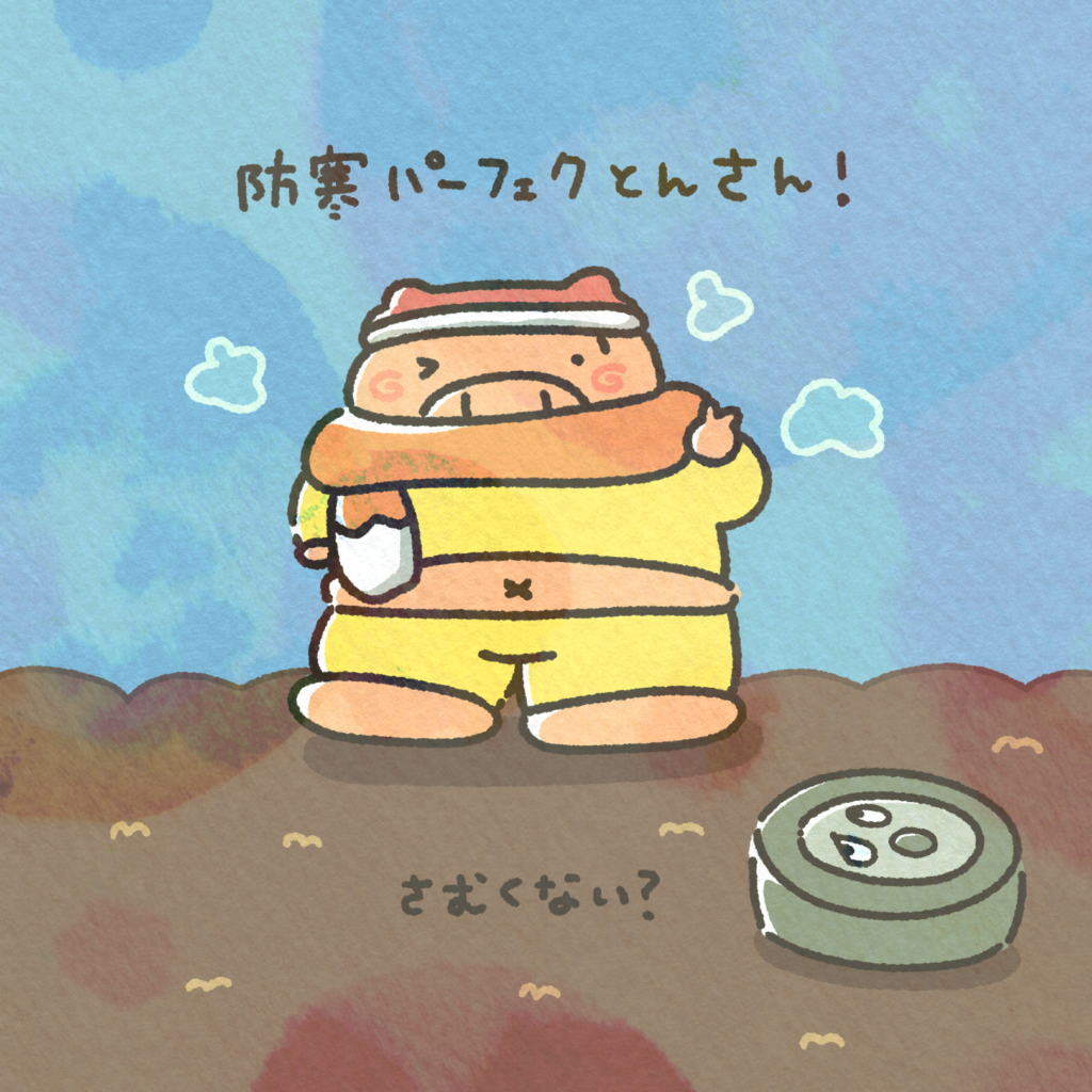 とんさんはちくわマフラー見せびらかしたいだけのブタちゃん。