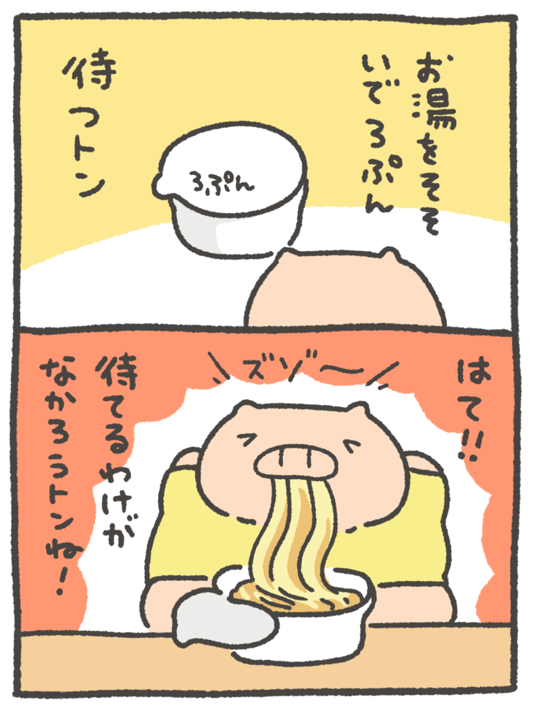 とんさんの日常4コマ (4日目) 3ぷんも待てるわけがなかろうズゾー